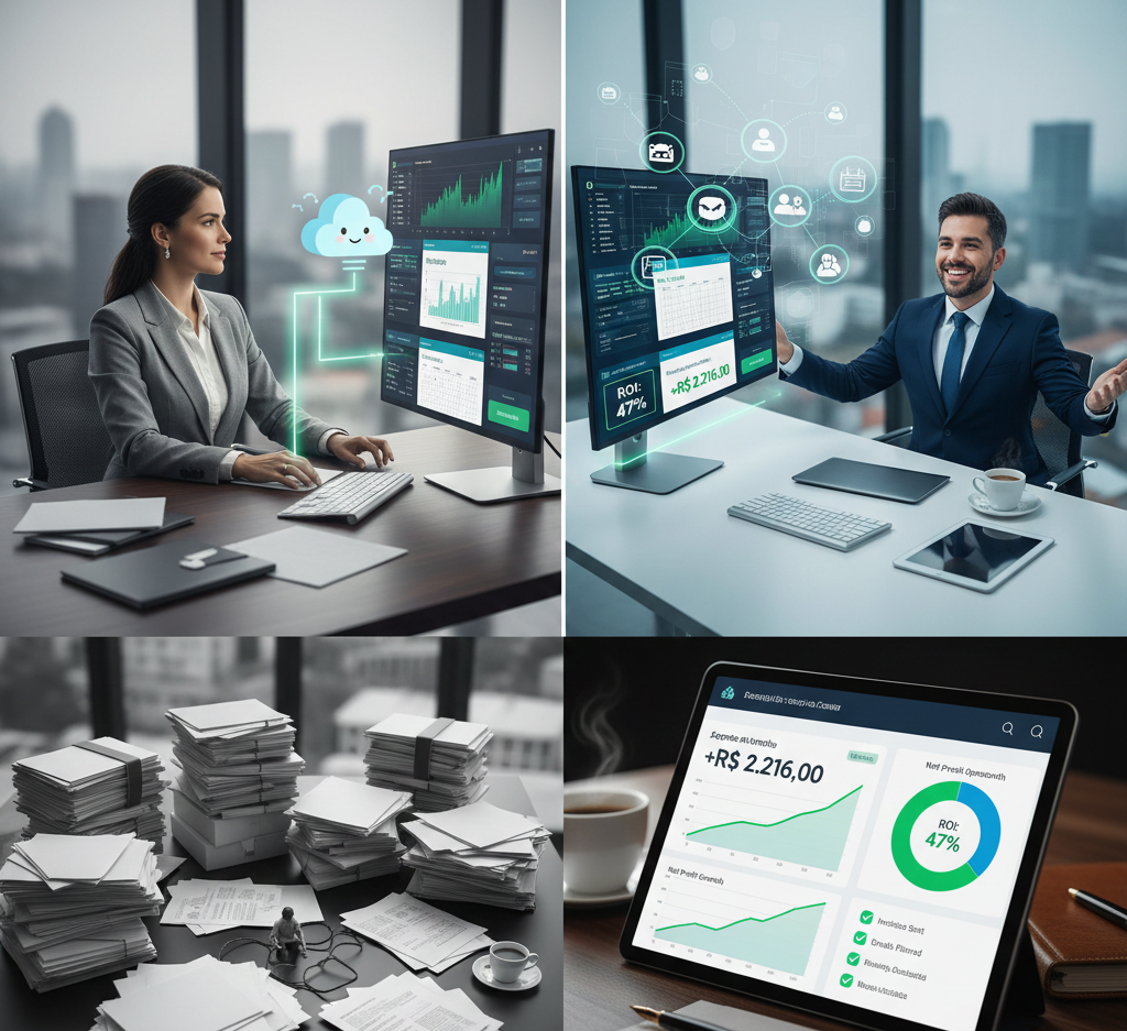 - O que delegar: O lançamento rigoroso de despesas, a emissão ágil de notas fiscais (NF-e) e, sobretudo, o follow-up estratégico de cobranças pendentes.